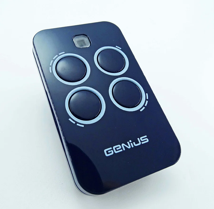 این ریموت کنترل توسط باطری ۱۲ ولتی تغذیه می شود. ریموت جنیوس چهار دکمه دارد که هرکدام به صورت جداگانه قابلیت برنامه ریزی و کپی از روی فرستنده دستگاه و همچنین کپی کردن از روی ریموت های دیگر را نیز دارد. این ریموت در رنگهای مشکی و سفید در بازار ارائه می شود و با طراحی ساده و ظریفی که دارد بسیار زیبا و خاص می باشد.