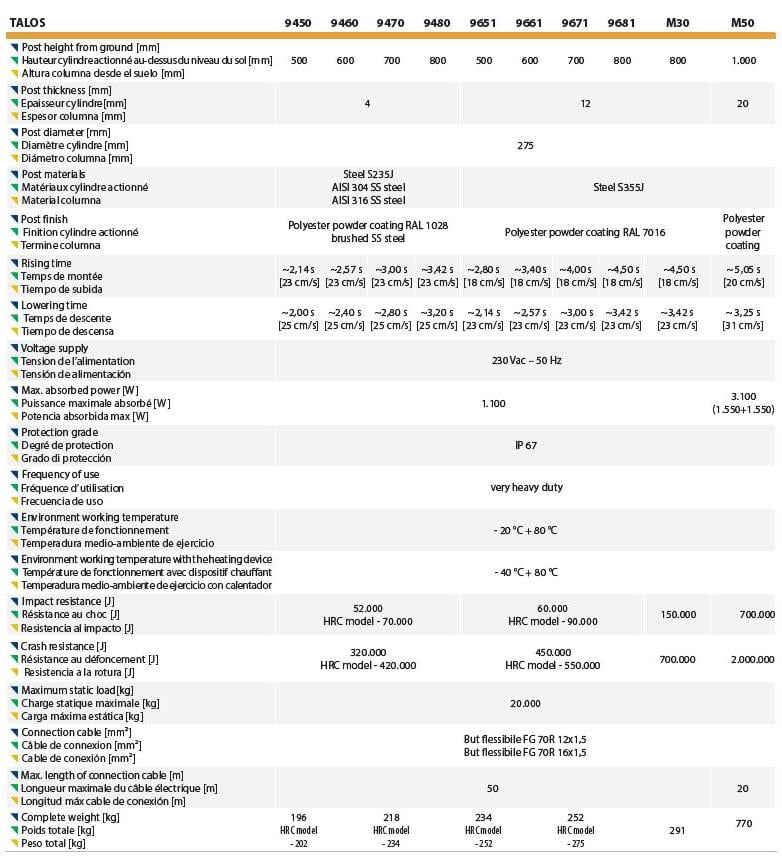 راهبند ستونی فادینی مدل TALOS دارای مدلهای مختلف میباشد. این راهبند نسبت به مدل خریداری شده دارای قدرت و بازدارندگی متفاوت می باشد. این راهبند ستونی مناسب کنترل تردد و حفاظت از مناطق حساس مانند سفارتخانه‌ها، پایگاه‌های نظامی و مراکز دولتی می‌باشد.